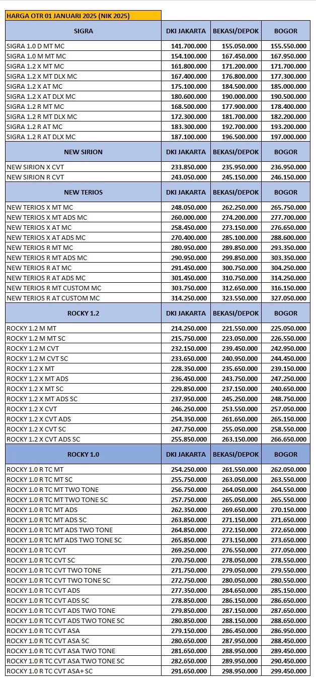 Saya sales Daihatsu Depok, dengan senang hari ingin membantu dan menawarkan produk kami kepada Bapak/Ibu, tentunya penawaran yang harga promo pembelian tunai maupun kredit yang sangat, murah, kompetitif.